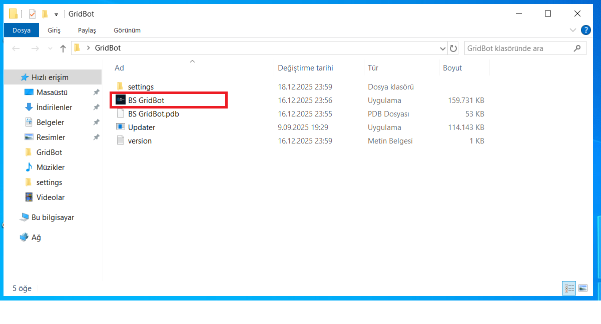 Programın içinde bulunduğu klasörü açın ve
