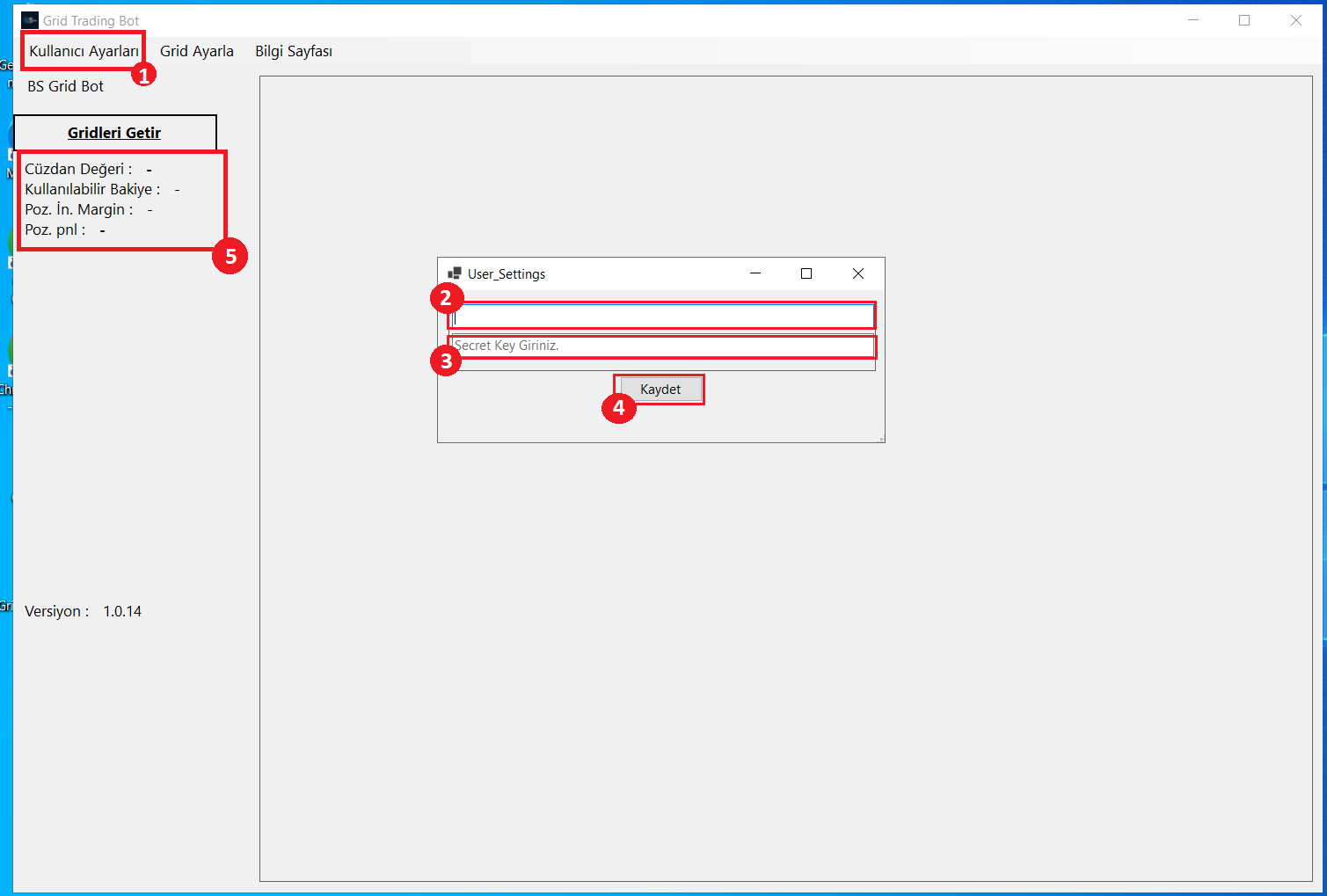 B. Kullanıcı Ayarları bölümünden API ve Secret tanımı yapın